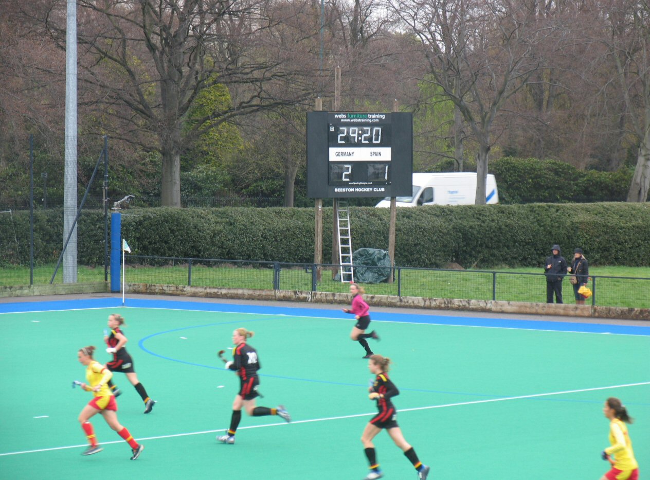 Sporting Designs scoreboard is designed specifically for hockey. Firstly, the scoreboard can be seen from over 150 metres away. It can easily be seen in bright sunlight. It can be operated wirelessly from over 200 meters away either by a timekeeper or even by an umpire on the field.
